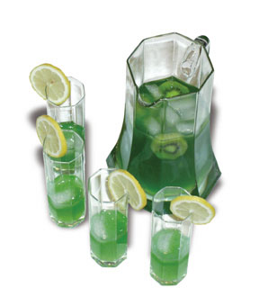 d'acqua tonica, 2 bicchieri di sciroppo al kiwi, alcune fettine